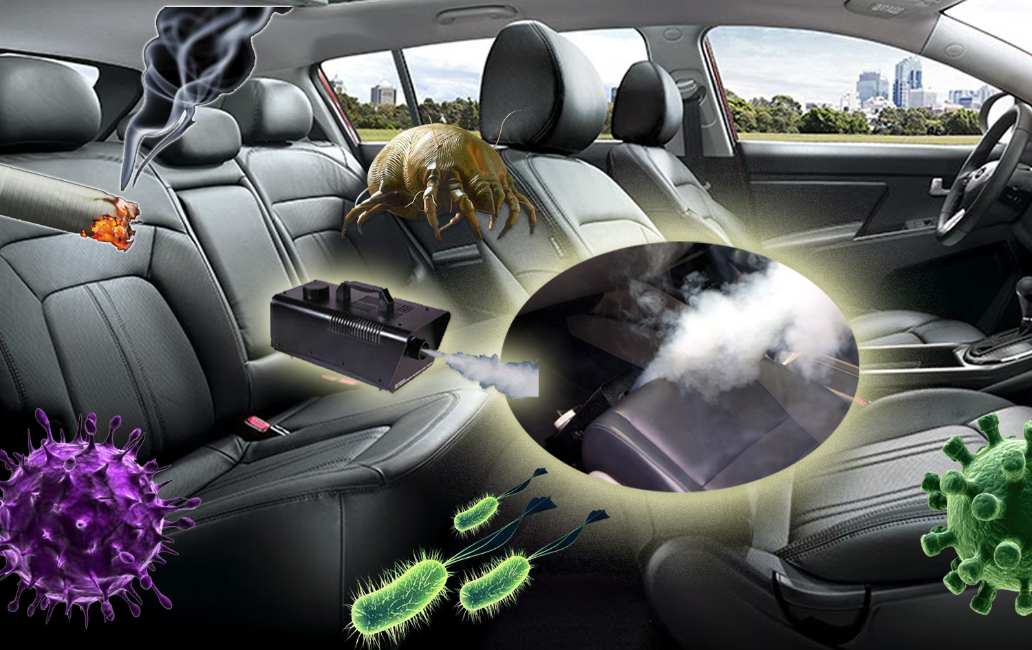 Powerful ozone treatment eliminates stubborn odours, bacteria, mould & more from your car's interior